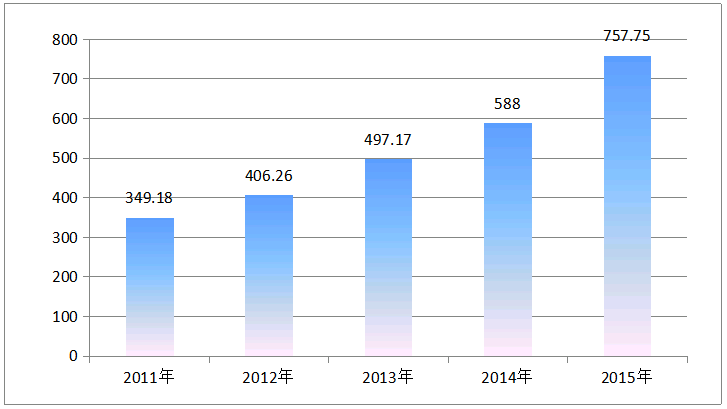 2011-2015年广东纺织服装固定资产投资走势图(单位:亿元)